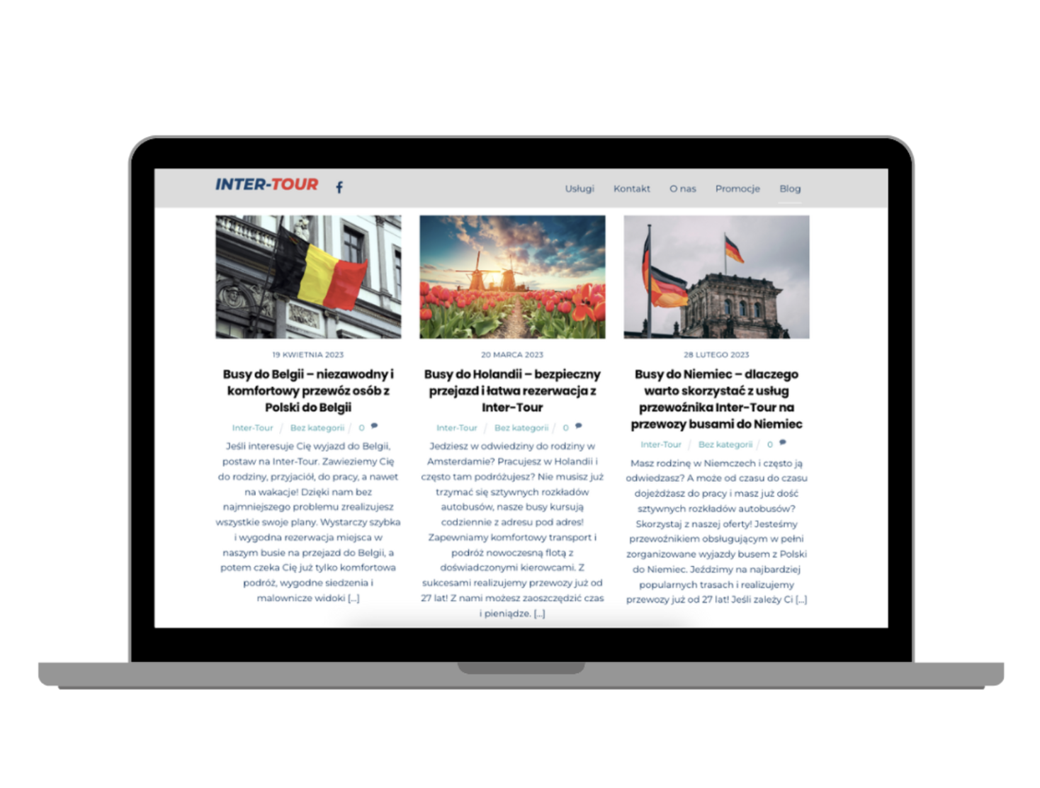 Firma INTER-TOUR zajmuje się organizacją przewozów międzynarodowych do Holandii, Niemiec, Belgii i z powrotem do Polski. W swojej ofercie mają również transfery na/z lotniska, wynajem pojazdów oraz pomoc drogową.